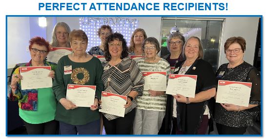 Great meeting tonight. Buffy Grieves was our speaker and we had several members receive Perfect Attendance Awards. Michelle Tinch received the Protege Award. We had 6 guests, yahoo. The chapter presented Shirley with flowers and a cake for being named 2024 Top Ten. What an honor.